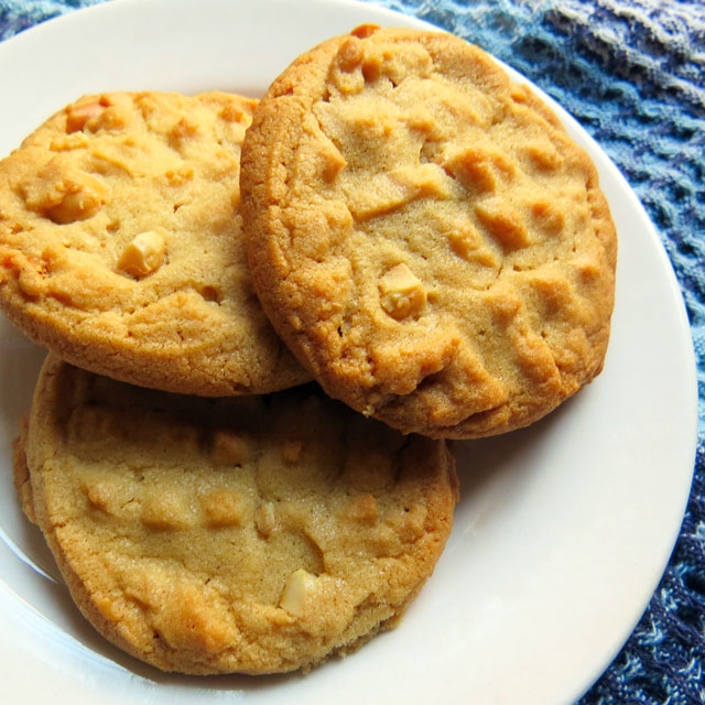 - Drop by tablespoon onto baking sheet, and flatten slightly using the tines of a fork in a crisscross pattern. Bake for 10 to 12 minutes until golden. Let sit for 5 minutes then transfer to a wire rack to cool. Makes 2 dozen.