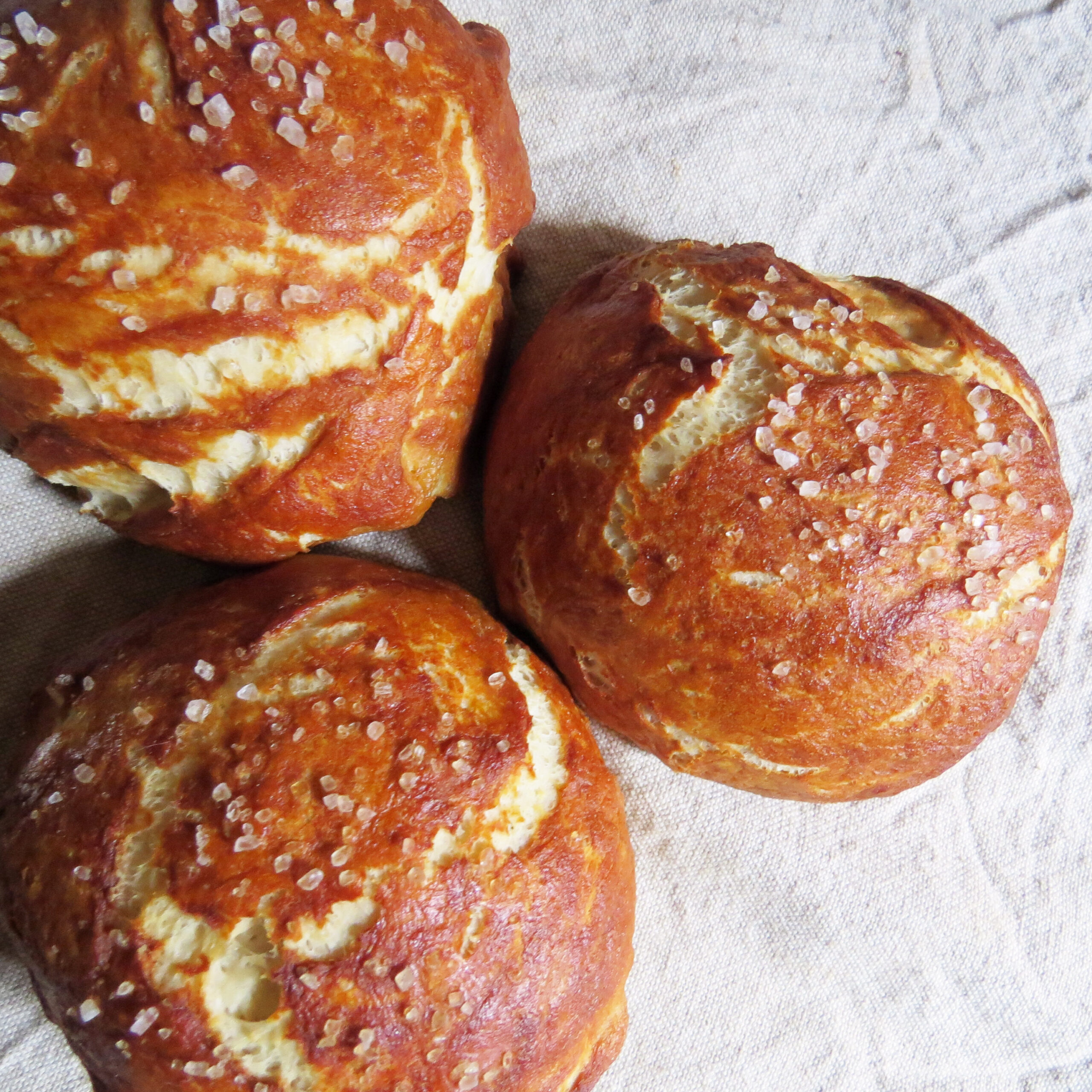 The Boy is a huge fan of soft pretzels, so it wasn’t difficult to talk him into making pretzel rolls with me. These rolls are delicious on their own, and they make fabulous burger buns! You can freeze the leftovers (if there are any leftover) by wrapping them individually in plastic wrap, them placing them in a gallon freezer bag or an airtight container.