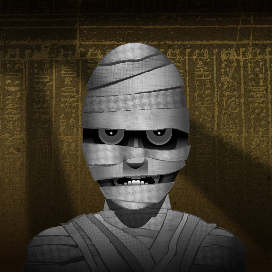 I started doing my series of Halloween Head vector illustrations almost 20 years ago with a simplified Frankenstein Monster done in Adobe Illustrator. I really started to chase down my vectorized villains and other digital designs with the release of the superlative Affinity Designer a little over ten years ago. Some of these monsters fall together fairly quickly while others are a bit of a struggle. Such is the case with The Mummy of which I have had a number of false starts. My gallery of rogues demanded an ancient Egyptian still alive over the millennia, and I think I may have finally got him.