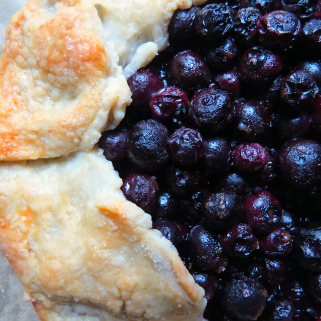 - Roll out dough, pour blueberries in the center of the crust, leaving a 2″ to 3″ border. Fold the crust over the berries all the way around. Brush the crust with the beaten egg and sprinkle with the remaining 1 tablespoon of granulated sugar.