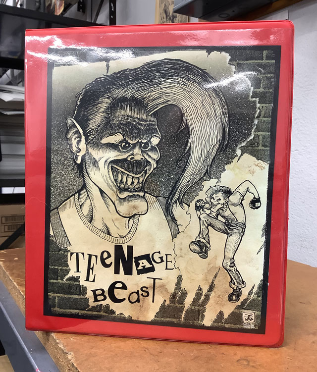 I’ve slipped a color laser printout of my Teenage Beast drawing into the front of the binder in order to identify the contents. I’m pleased with the way this looks. It’s a hell of a lot better than a Dymo label. It makes it feel real like it’s a genuine product that will sit on a shelf.