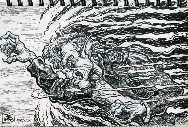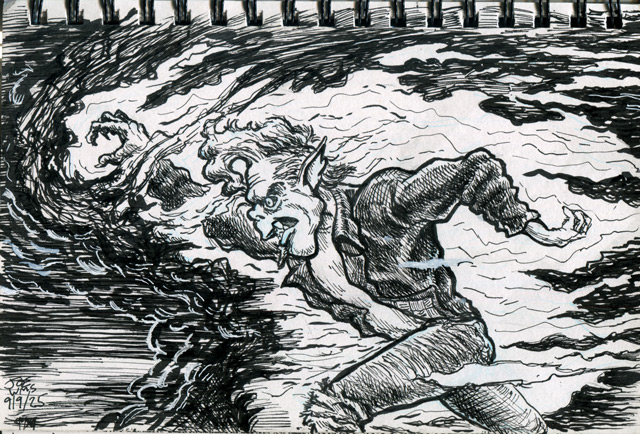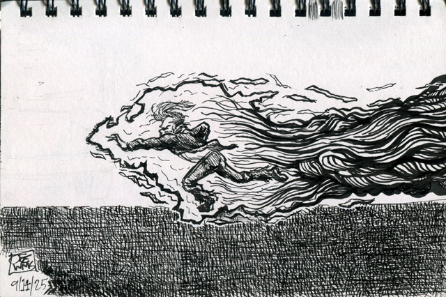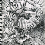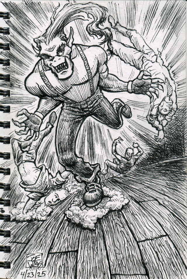 As I wrote above, the Ticonderoga sketchbook took ink very well. It doesn’t bleed or show through to the next page. This sketchbook combined with my beloved Sailor Fude De Mannen fountain pens has afforded me the opportunity to draw more finished and thus more satisfying works rather than the tentative pencil doodles I have been scratching in sketchbooks for years. The pen and ink drawings are more deliberate and more finished.