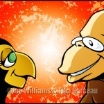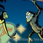 This was one of the more popular web comics published at CO2 Comics a while back. It was the romantic adventures of a monkey and bird who met in the jungle and fell in love. I wrote and drew it while Tina colored and created backgrounds. You will find sketches and preliminary work on this page.