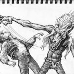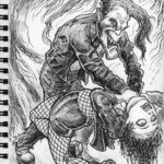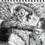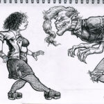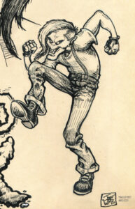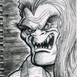 Back in the mid-1980s, I was working on what I thought would be a classic monster like Universal Studios’ classic stable of monsters like Dracula, Frankenstein and the Wolf-Man only my monster would be firmly established in the then current milieu of PUNK. The creature was based on the Cramps song “The Goo Goo Muck” which was a cover of an obscure 1962 recording by Ronnie Cook & The Gaylads. I was afraid that the term Goo Goo Muck was trademarked or copyrighted in some way so I called my character the Teenage Beast. I worked on some drawings, some notes and wrote an outline, but for reasons forgotten, my ardor for the project faded. My work went into storage.