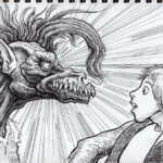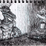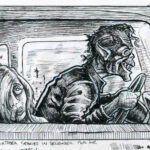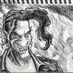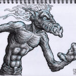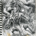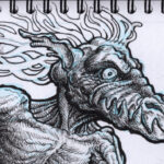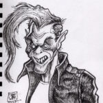 Flash forward nearly 40 years to Christmas 2024 when I was rummaging around some flat file cabinets in my studio and found a pair of pencil drawings of the Teenage Beast which I decided to finish with my Sailor Fude De Mannen fountain pen. I was pleased with the results and I found myself fired up about a cartoon character I created while Reagan was still in the White House.